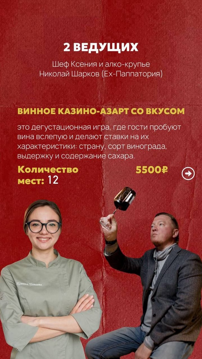 В программе 3,5 часа кулинарный МК по приготовлению пасты с тремя видами оригинальных сыров + гастрономические закуски, сыры, оливки, сыровяленное мясо + ГВОЗДЬ программы - это ВИННОЕ КАЗИНО! Забронировать по ссылке или прям тут. Наша LOVEка в Максике