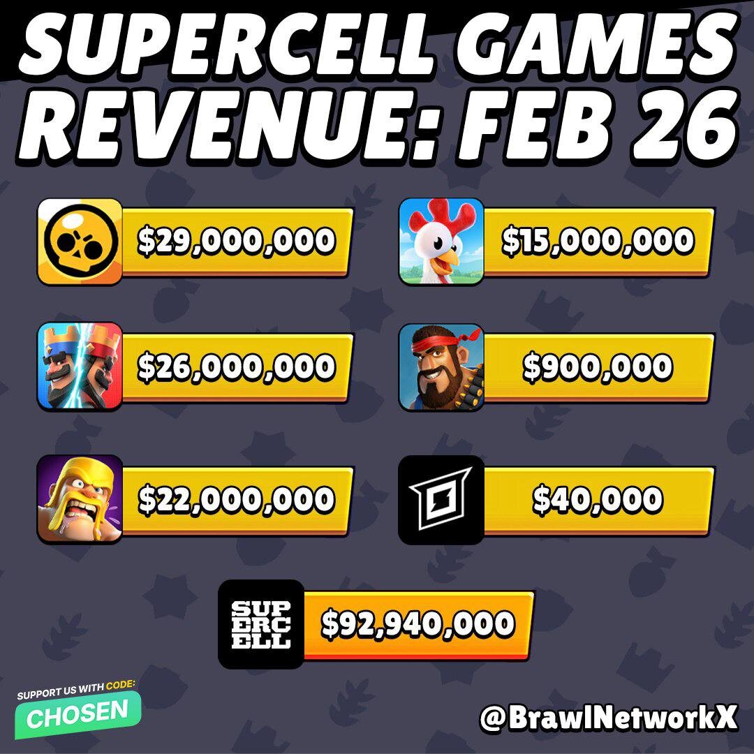 ⚡️ Заработок игр Supercell за февраль 2026 года!