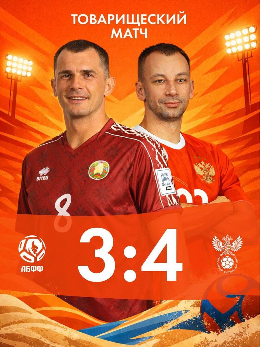 Матч закончился со счетом 4:3 в пользу россиян. Авторами голов у белоруской команды стали Юрий Петровский, Владимир Устинович и Евгений Новиков. В конце марта у сборной Беларуси запланирован учебно-тренировочный сбор в Омане. 🔴 Читайте Sputnik Беларусь в MAX