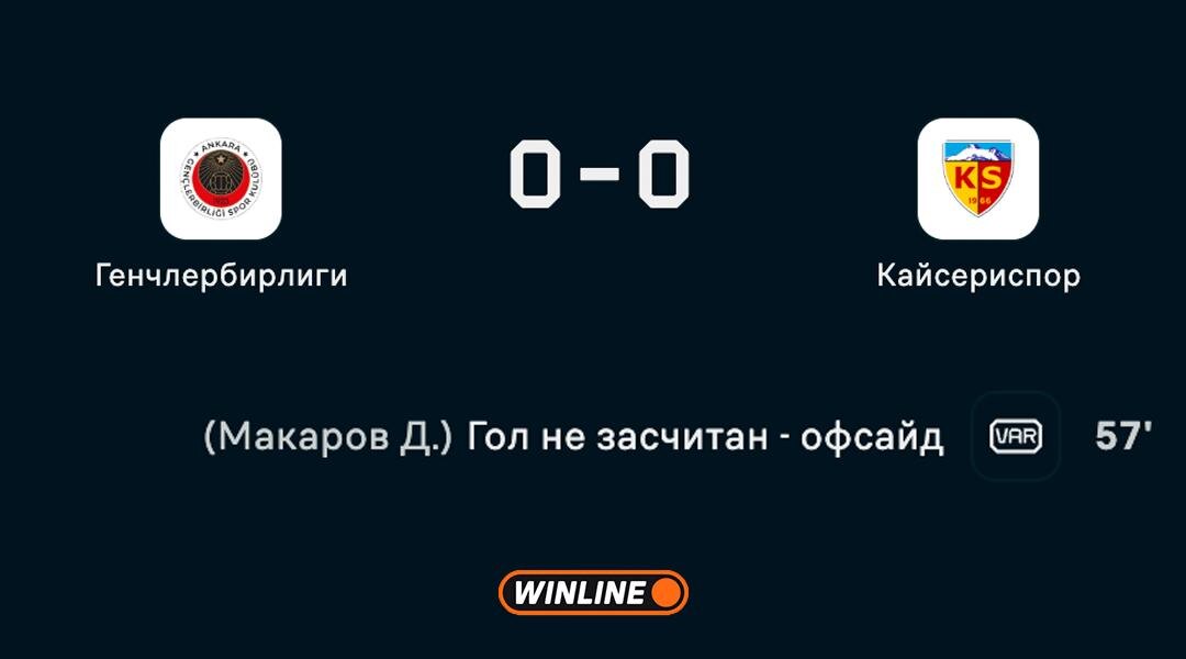 Гол Дениса отменили из-за офсайда после просмотра VAR.