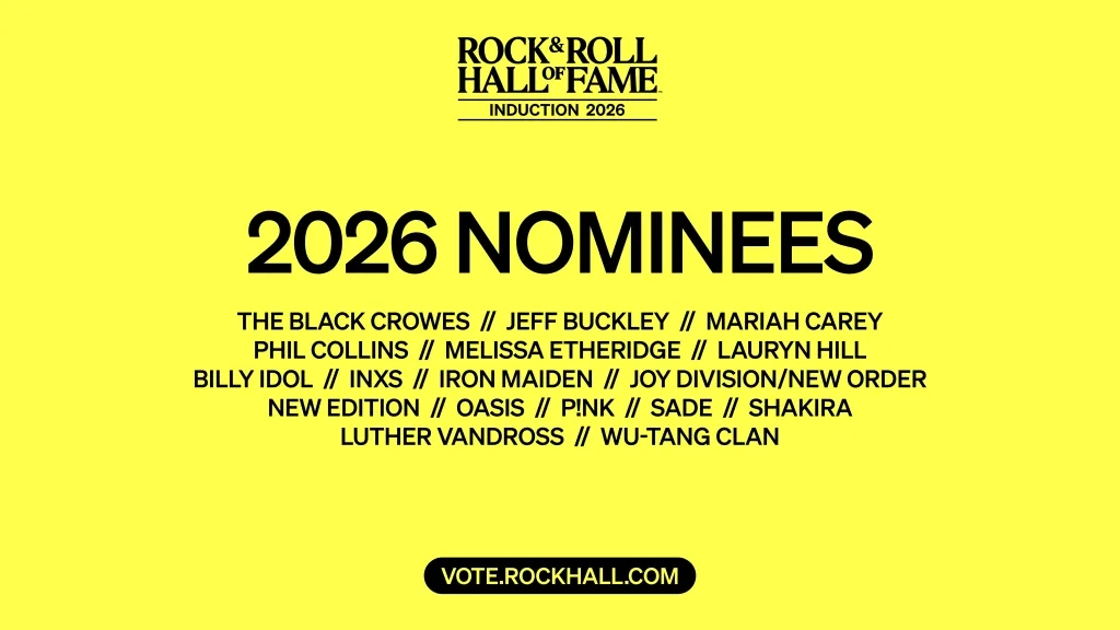Объявлены имена номинантов, которые могут быть включены в Зал славы в 2026 году. В этом году Зал славы включил в свой список 17 исполнителей, 10 из которых номинируются впервые. Джефф Бакли, Wu-Tang Clan, Лорин Хилл, Лютер Вандросс, Пинк, Шакира, INXS, New Edition, Мелисса Этеридж и сольный исполнитель Фил Коллинз — все они впервые претендуют на включение в Зал славы. Эти артисты присоединились к семи группам, которые были номинированы в предыдущие годы, но не получили награду: Oasis, Iron Maiden, Мэрайя Кэри, Sade, Билли Айдол, The Black Crowes и объединение групп Joy Division и New Order. Это третья номинация для Oasis, Iron Maiden, Кэри и Joy Division/New Order. The Black Crowes и Билли Айдол были номинированы впервые в прошлом году, а Sade — годом ранее. У Зала славы уже давно сложилась традиция номинировать исполнителей, переживающих второе рождение — эффект Кейт Буш из «Очень странных дел» — и в этом году Джефф Бакли, безусловно, подходит под это определение, ведь он сейчас на пи