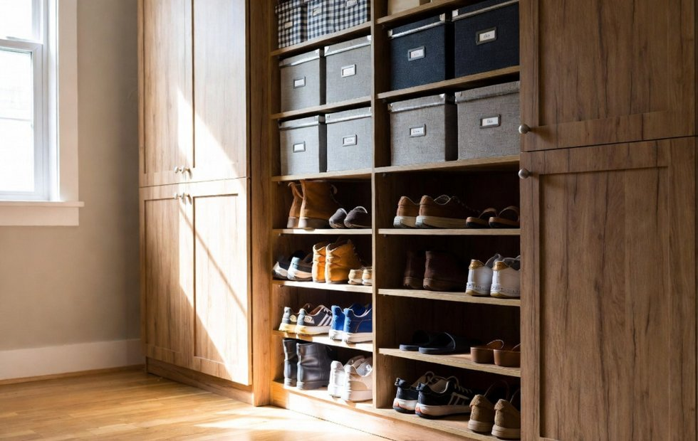 Попробуем уместить обувь в обычной прихожей типовой квартиры Средняя российская семья из четырех человек владеет примерно 40-50 парами обуви. Зимние сапоги, демисезонные ботинки, летние сандалии, кроссовки для спорта, кроссовки для прогулок, туфли на выход, домашние тапочки, пляжные шлепанцы. Умножьте на четыре человека и попробуйте уместить это в обычной прихожей типовой квартиры. Большинство семей просто складывает обувь кучей: на полу в прихожей, в шкафу вперемешку, под кроватью в коробках, на балконе в пакетах. В результате нужная пара не находится, найденная оказывается грязной, а покупки продолжаются, потому что кажется, что коричневых ботинок нет (на самом деле они есть, просто на дне кучи). Достаньте всю обувь. Буквально всю. Из прихожей, из шкафов в спальне, с балкона, из-под кровати, из кладовки. Соберите в одном месте и посмотрите на эту гору. Теперь посмотрите честно. Сколько пар не надевалось год? Сколько жмут, но вы надеетесь, что нога похудеет? Сколько вышли из моды деся