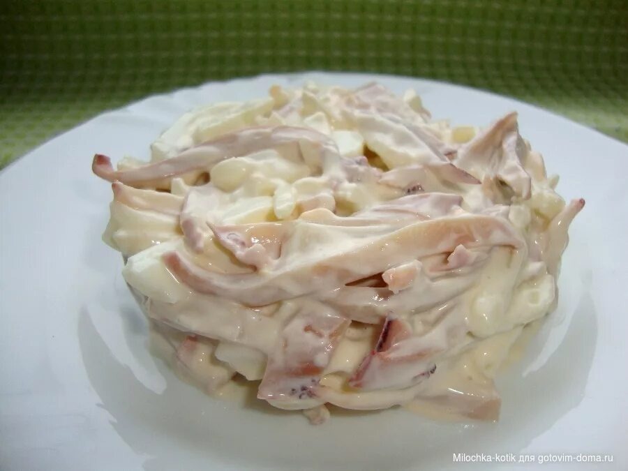 Хочу поделиться рецептом очень вкусного салата из кальмара и ветчины.