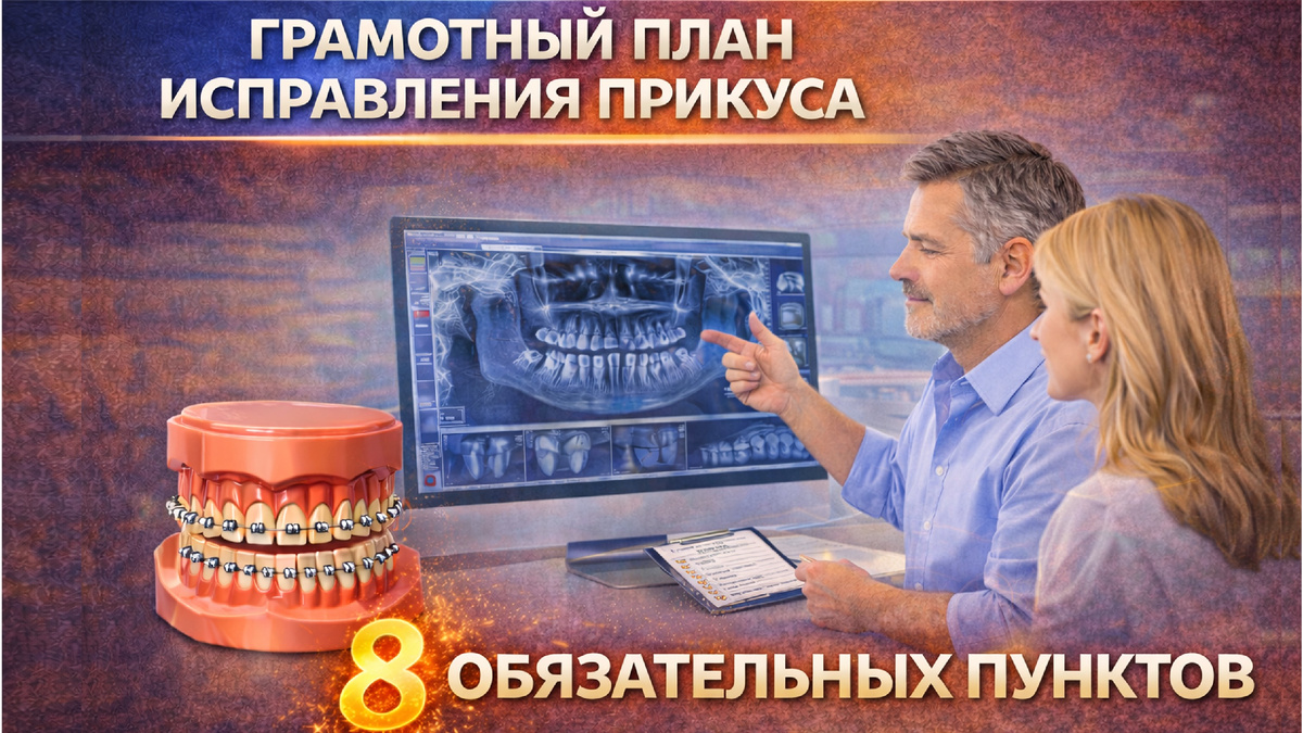 Грамотный план ортодонтического лечения — это 8 обязательных пунктов от диагностики до ретенции с конкретными сроками, рисками и контролем. Без плана лечение превращается в лотерею.