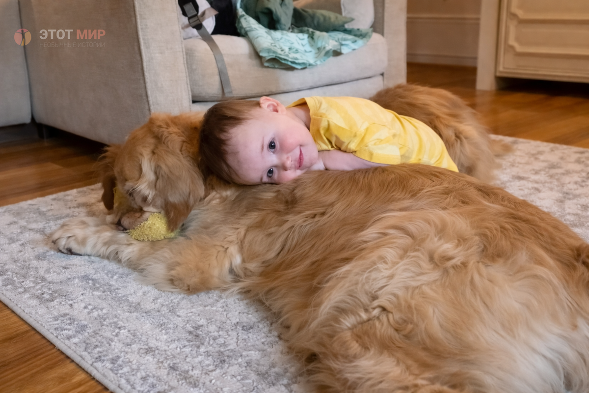 Когда Мила начала ползать, она всё чаще выбирала направление не к родителям, а к собакам, двигаясь по полу, отталкиваясь ладонями и сосредоточенно преодолевая расстояние до их лежанки. Добравшись до цели, она хваталась за шерсть, за уши, за всё, до чего могла дотянуться, и Ричи, принимая её неуверенные движения, оставался неподвижным, контролируя силу своего тела и сдерживая естественную реакцию на дискомфорт.