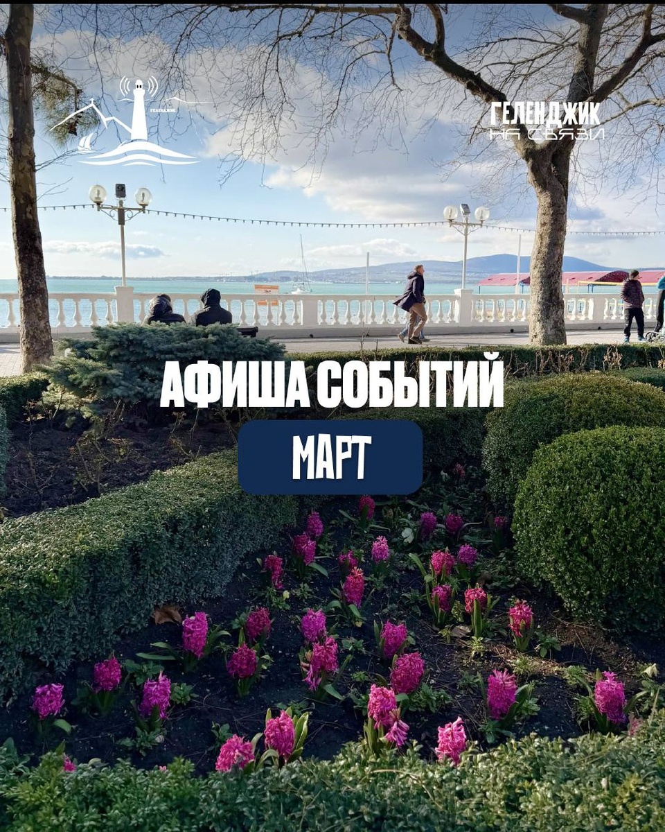 1 марта Открытие выставки «iq-дизайн» в Чай.собака.Пастернак 3 марта, 15:00 Кубанский симфонический оркестр в ДК 🎫Вход свободный 6 марта Давай концерт (проект ДАВАЙФЕСТ) Музыкально-философский концерт в честь 8 марта в Геленджик-арене 🎫Билеты Концерт «Симфотека» дискотека 90х с оркестром «RED Orchestra» 🎫Билеты Вечер с сомелье в ресторане Лагуна 7 марта Городской Забег на Терренкур Маркотх 🎫Участие бесплатно Интерактивный спектакль «Гарри Поттер» 🎫Билеты Концерт Люмисфера и 3000 свечей То самое свидание 🎫Билеты Дневной уличный концерт кавер-группы в Гольф клубе Мастер-класс «торт с нуля» в Шато де Талю 8 марта Балет Лебединое озеро 🎫Билеты Концерт скрипичной музыки «Шепот струн» 🎫Билеты 11 марта Джаз-концерт: Шерил Пепси Райли (США) и трио Interplay в Старом парке 13 марта спектакль Последняя попытка в театре Старого Парка 14 марта Гастроужин «Терруар Большого Геленджика» в Шато де Талю Мистическое действо «Майская ночь» 🎫Билеты Трибьют-шоу «Кино» в исполнении