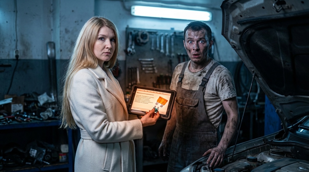Я видела, как изменилось его лицо. Он явно прочитал код ошибки. И этот код был пустяковым. Потому что после этого он не полез ни к датчикам, ни к проводке. Он просто закрыл капот и направился ко мне.