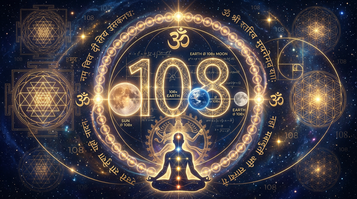 Возьмите чётки — в них 108 бусин. Откройте каталог Упанишад — их 108. Изучите карту энергетических точек тела в Аюрведе — их 108. Подсчитайте позы в танце Шивы — их 108. Посмотрите на небо и измерьте расстояние от Земли до Солнца — оно равно 108 диаметрам Солнца.