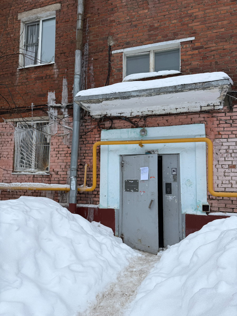 Здесь практически все квартиры закрыты и опечатаны, удалось заглянуть лишь в одну из них, подтопленную талой водой с неочищенной крыши.