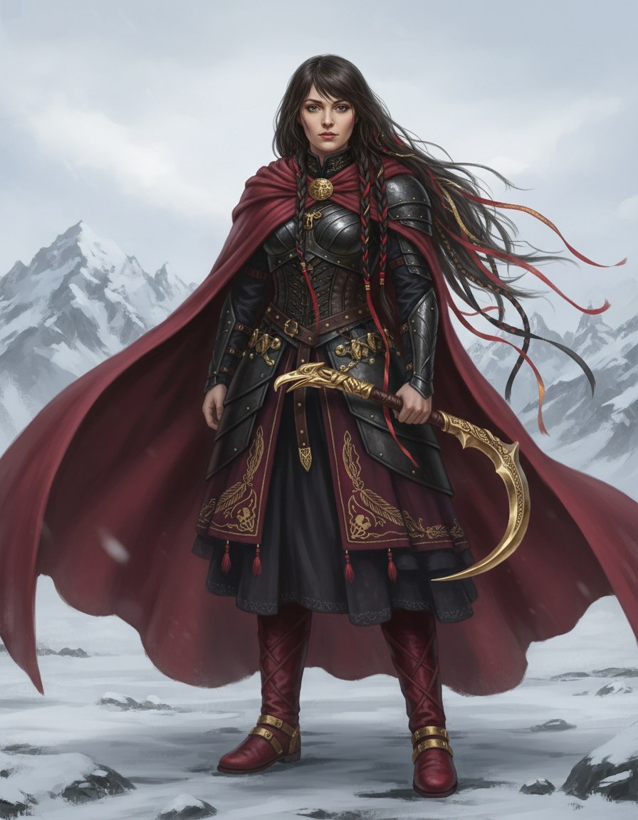 Он встал, подошёл к окну и замер. За стеклом, в вихре снега, стояла девушка. Её длинные чёрные волосы были покрыты инеем. Лицо, бледное от холода, казалось хрупким, на левой щеке красовался свежий порез, а губы посинели. Но больше всего Марка поразили её огромные, тёмные глаза, они смотрели на него с особенной глубиной и надеждой. Она была закутана в промокший алый плащ, а черный боевой костюм, будто из косплея аккуратно облегал стройную фигуру, на поясе висел поблескивая золотой серп.