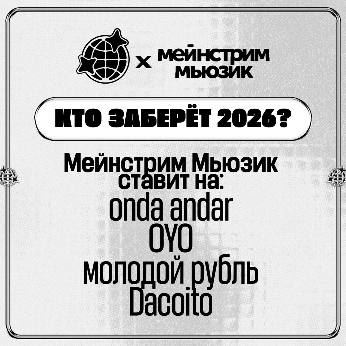 Ваш админ принял участие в рубрике-прогнозе NVP «Кто заберёт 2026?» и назвал свой ТОП-4 музыканта, за которыми стоит следить в ближайшее время. Ищите в статье номер 3 — там вас ждёт небольшое пояснение моего выбора. Спасибо каналу и ребятам из NVP за приглашение поучаствовать! @mainstreamusic