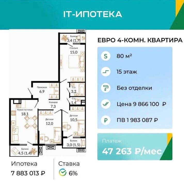 жизни и дохода Квартира для тех, кто выбирает не метры, а комфорт каждый день. • Кухня-гостиная 18,1 м² — центр жизни. Место для большого стола, диванной зоны и встреч, которые не хочется заканчивать. • Три изолированные комнаты. Можно сделать мастер-спальню, детскую и кабинет • Два санузла — редкость в этом бюджете. Утренние сборы без очередей и нервов. • Отдельная гардеробная и ниша под хранение. Чемоданы, сезонные вещи и «всё нужное» не живут в спальне. • Три балкона. Дополнительный свет, воздух и пространство для отдыха или рабочего уголка. • Удобная геометрия комнат. Минимум бесполезных метров — максимум функционала. Формат, который одинаково хорошо работает для семьи и для инвестиции. 👉 Хотите подробную подборку таких планировок с расчётом платежа и доходности — напишите мне @ekaterinaburlakoya