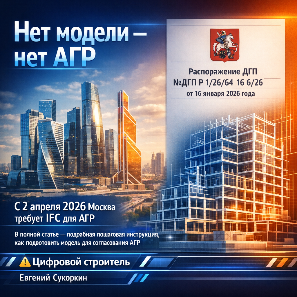 Эта история станет массовой с 2 апреля 2026 года. Распоряжение Департамента градостроительной политики города Москвы №ДГП-Р-1/26/64-16-6/26 от 16 января 2026 года «Об утверждении Требований к материалам в формате IFC, предоставляемым в целях согласования архитектурно-градостроительных решений объектов капитального строительства» вводит обязательное предоставление цифровой информационной модели для получения свидетельства об утверждении АГР.