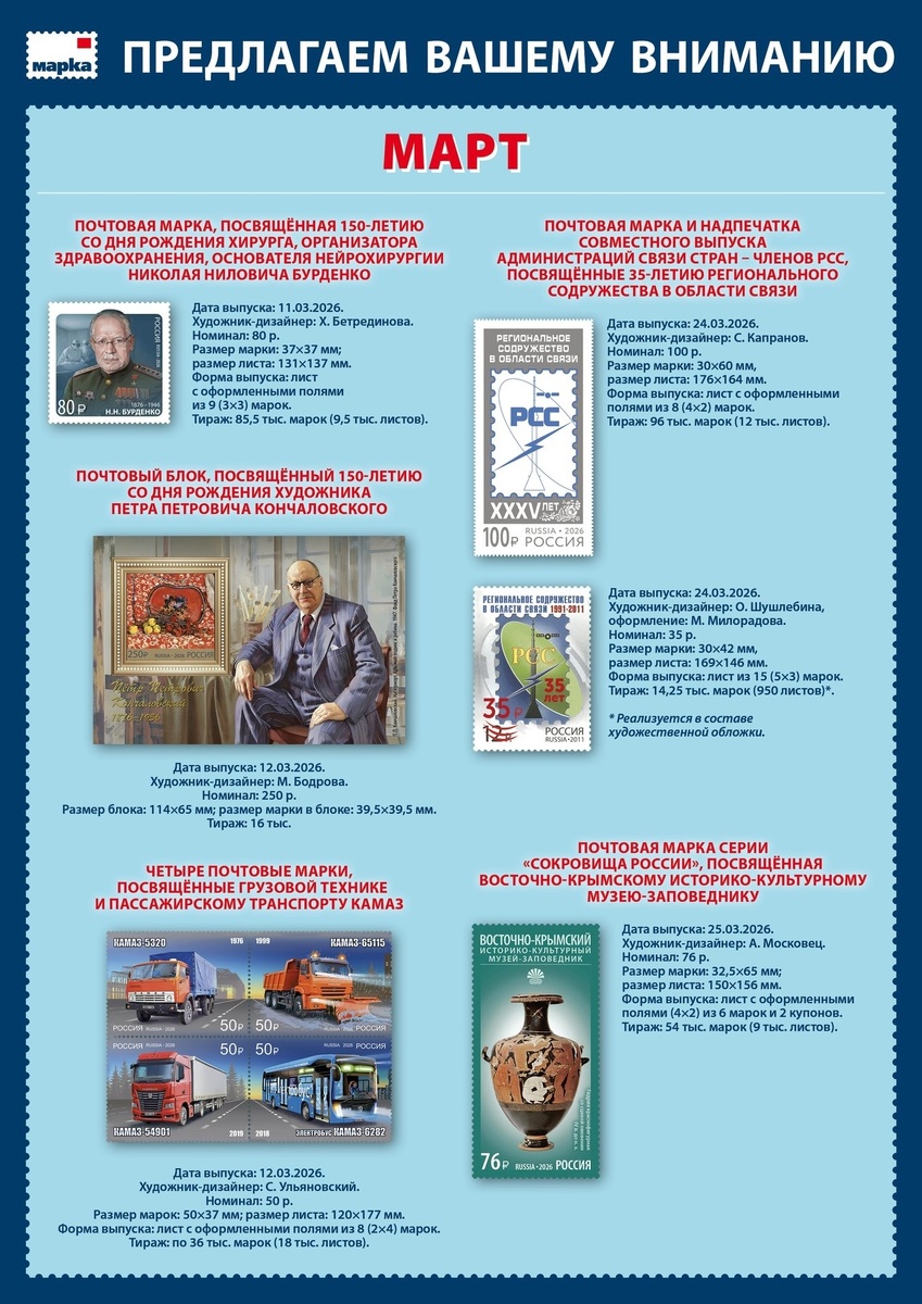 План выпуска государственных знаков почтовой оплаты за март 2026 года