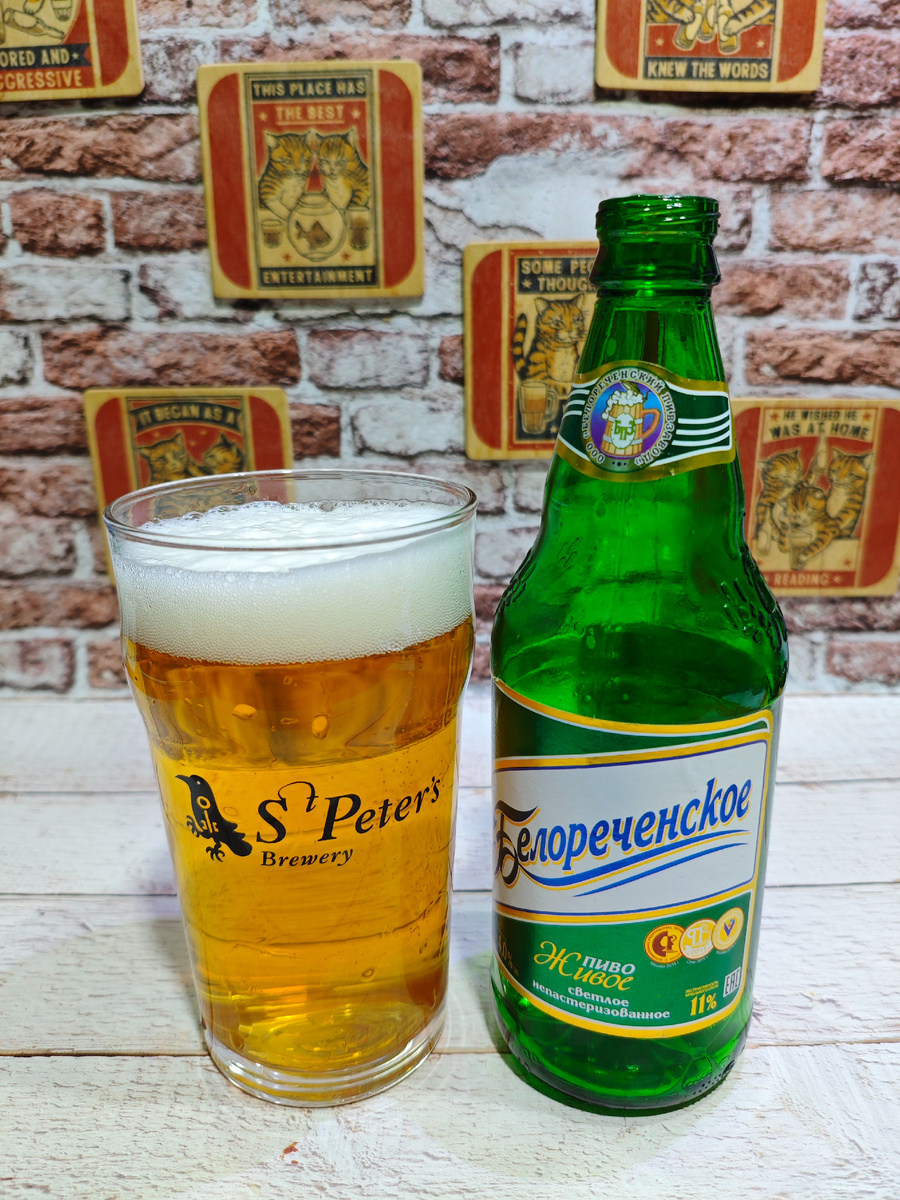 Изготовитель: ООО "Белореченский пивзавод", Краснодарский край. На сайте пивоварни можно прочитать следующее: С полным гармоничным вкусом и выраженной приятной хмелевой горечью. Изготовлено из лучших сортов солода и ароматного хмеля. ********************************************************************************** Плотность: 11%. Состав: вода, солод пивоваренный ячменный светлый, крупа кукурузная, сахар, хмель гранулированный, дрожжи пивные. Срок годности: 60 суток при соблюдении температурного режима от +5℃ до +20℃. С даты розлива моей бутылки прошло чуть более одного месяца. ********************************************************************************** Пена на месте; держится средне, но раствориться полностью не спешит. Аромат кисловатый солодовый с зерновым оттенком; не сильно яркий, но вполне интенсивный. В каком-то смысле типичный аромат простого регионального светлого лагера. Карбонизация высокая. Вкус полностью соответствует ароматике: солодовый с кислинкой, сильным хлебн