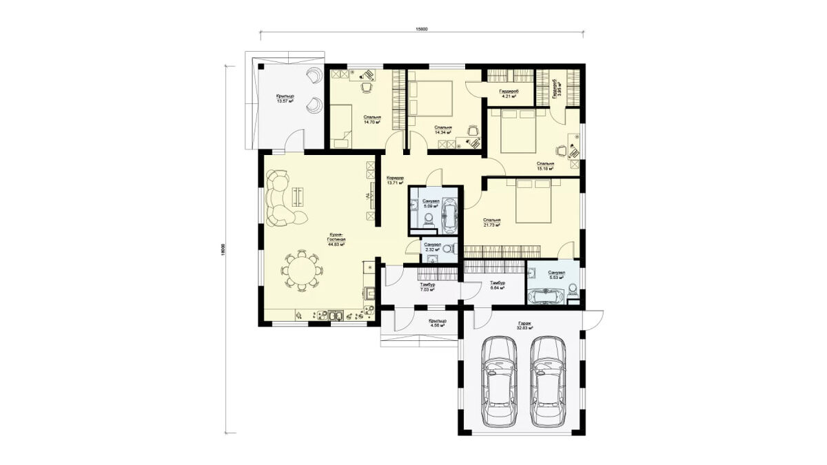 🏡 Представляем проект МС-193 — просторный одноквартирный дом 16x18 метров, созданный для комфортной жизни семьи из 5-6 человек! ✨ Этот современный загородный коттедж из энергоэффективных ЖБ панелей БЭНПАН сочетает стиль, удобство и экологичность. 🔸 Планировка дома: Через небольшое крыльцо попадаем в тамбур, который ведет в теплый гараж на две машины и жилые помещения. Полукруглый коридор огибает два санузла и дает доступ к просторной кухне-гостиной и четырем спальням. Две спальни оборудованы гардеробными, одна — индивидуальным санузлом. А кухня-гостиная с выходом на террасу во внутреннем дворе — идеальное место для отдыха и семейных посиделок! 🌳☀ 🔹 Хотите узнать больше? Подробнее о проекте → https://benpan.ru/project/ms-193-odnoehtazhnyj-zagorodnyj-dom-s-garazhom/?utm_source=dzen