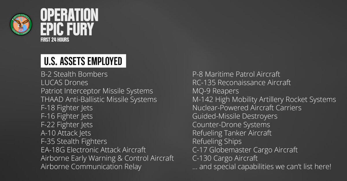 Вышли слайды по первому дню американской операции «Эпическая ярость» против Ирана