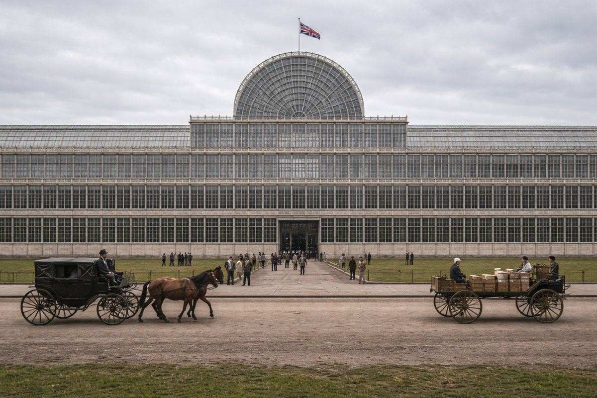 Официальная история говорит: это была «Великая выставка достижений». Но давайте пересчитаем. Если вам нужна выставочная площадь, вы строите павильоны. Если вам нужен ботанический сад — оранжерею. Пакстон построил гибрид. Зачем?