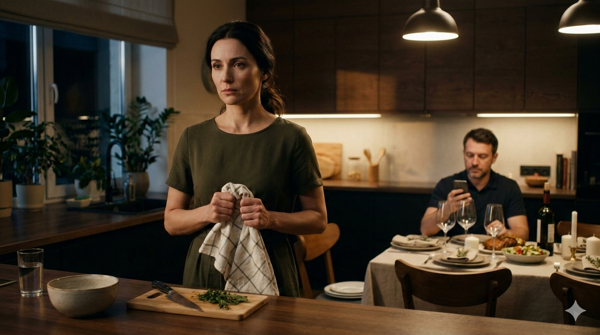 Три дня перед праздником Светлана провела на кухне. Она пекла, жарила, резала салаты, продумывая подачу так, словно готовилась к приему комиссии Мишлен. Внутри нее ледяной, спокойной глыбой росла решимость. Она играла роль идеальной жены. Андрей заходил на кухню, с наслаждением втягивал носом ароматы и снисходительно похлопывал её по плечу: — Молодец, Светик. Прямо постаралась. Альбина тоже всегда умела красиво гостей встретить. Хоть не опозоришь меня перед ней. Светлана лишь молча переворачивала куски мяса на сковородке. Накануне вечером она сказала мужу, что у нее ужасно разболелась голова, и вышла "до ближайшей дежурной аптеки". Андрей даже не оторвался от телевизора. Восьмого марта гости начали стягиваться к пяти. Светлана встречала их в новом роскошном платье цвета изумруда, с идеальной укладкой. Она принимала чахлые тюльпаны, улыбалась, усаживала друзей мужа. Последней, опоздав на полчаса "для эффекта", вошла Альбина. Высокая, холеная, с ярким агрессивным макияжем и в платье, кот