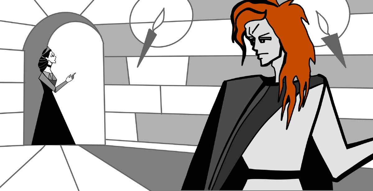 Так граф Строжарио в тот же самый день предстал перед королевой Строгой во всем своем великолепии. В тронном зале царил полумрак, все стояли в темных балахонах и капюшонах, с, чего там греха таить, унылыми лицами.