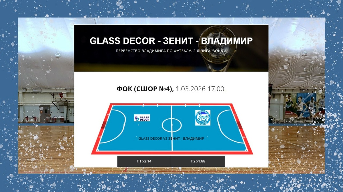 Первенство Владимира по футзалу. 2-я лига. Зона А. 01.03.2026 г. Glass Decor - Зенит - Владимир 4:3 (0:2) Обзор
