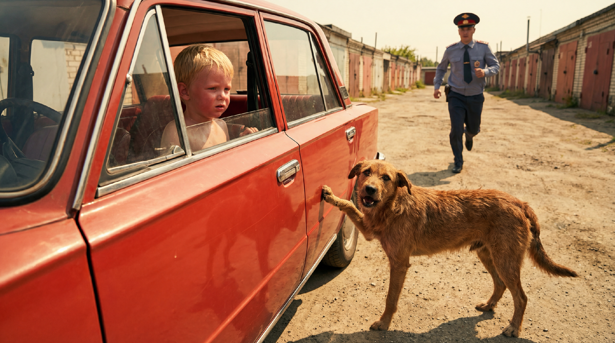 Внутри было очень жарко. Я быстро вытащил мальчика и вынес в тень гаража. Собака села рядом, лизнула ребёнку руку. Я сразу вызвал скорую помощь.