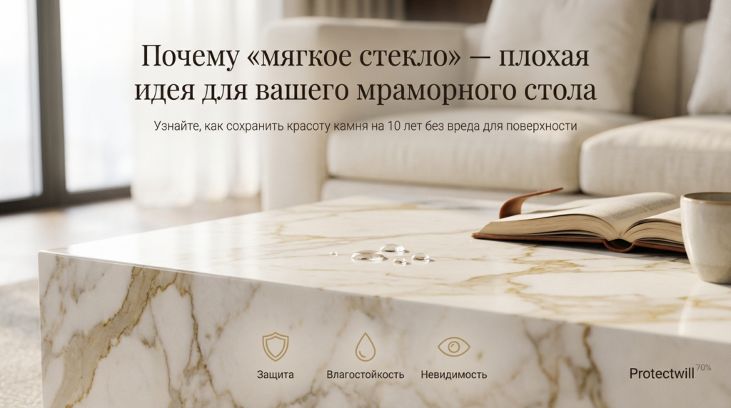 Защита столешницы из натурального камня: почему «мягкое стекло» — худший сценарий для мрамора