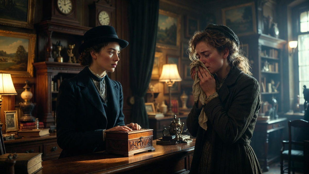 На пороге стояла девушка. Молодая, лет восемнадцати, в поношенном пальто и дешёвой шляпке, которая явно видала лучшие времена. Руки её дрожали, а глаза опухли от слёз. Она явно не принадлежала к числу обычных клиентов антикварной лавки Генри Коула.
