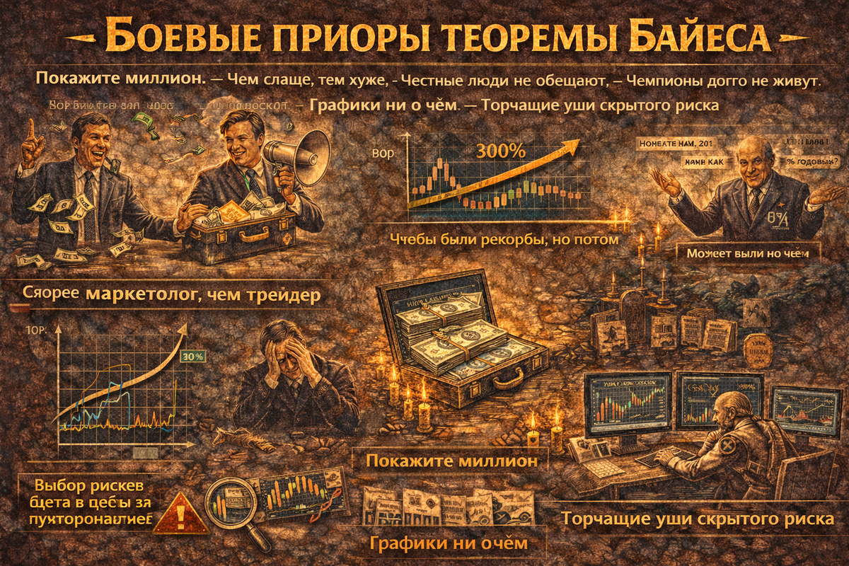 Значит, априорная вероятность: если вы ничего не знаете о человеке, кроме того, что он представляется трейдером, перед вами с вероятностью 99% дурак или шарлатан.