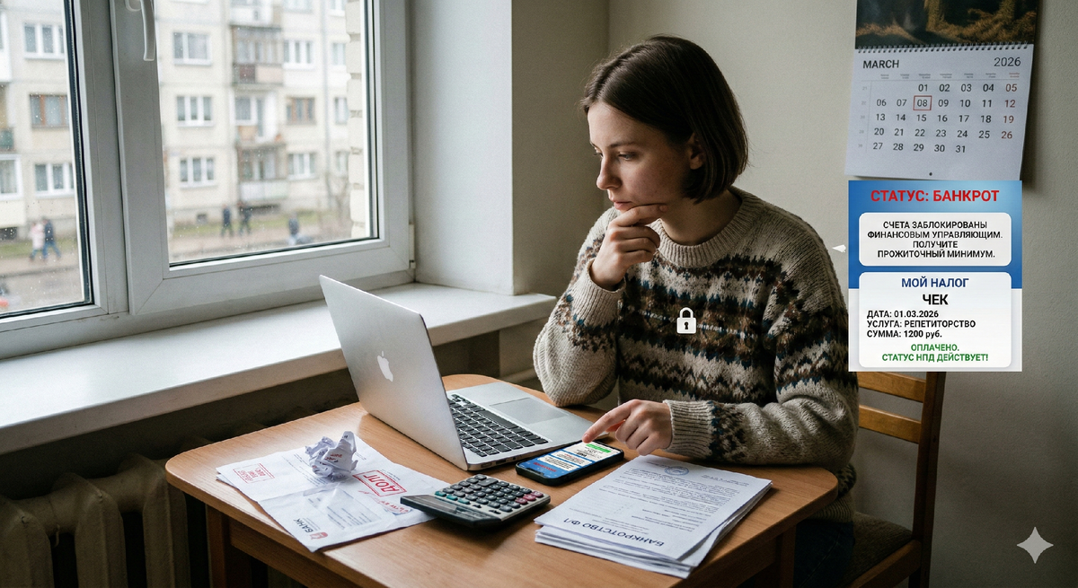 Фрилансеры, мастера маникюра, репетиторы, кондитеры и таксисты — сегодня миллионы людей работают на себя в статусе самозанятых (плательщиков НПД). Это удобно: налоги минимальные, отчетности нет, все делается в пару кликов через приложение «Мой налог». Но что делать, если бизнес не пошел, клиентов стало меньше, а кредиты и микрозаймы никуда не делись? Многие самозанятые боятся банкротства как огня. Главный страх звучит так: «Если я подам на банкротство, мне заблокируют "Мой налог", я потеряю статус, лишусь всех клиентов и останусь вообще без копейки!» Давайте развенчаем этот миф и разберем, что на самом деле происходит с доходами и приложением самозанятого во время процедуры списания долгов. Короткий ответ: Нет. Важно понимать одну простую вещь: приложение «Мой налог» — это не банк. В нем не хранятся ваши деньги. Это просто удобная государственная касса для выдачи чеков клиентам и автоматического расчета налога. При процедуре банкротства никто не блокирует ваш аккаунт в приложении. Вы