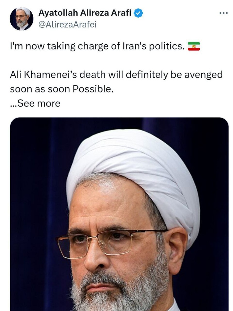 Այս մասին գրել է իր X սոցիալական ցանցի էջում այաթոլլա Ալիրեզա Արաֆին