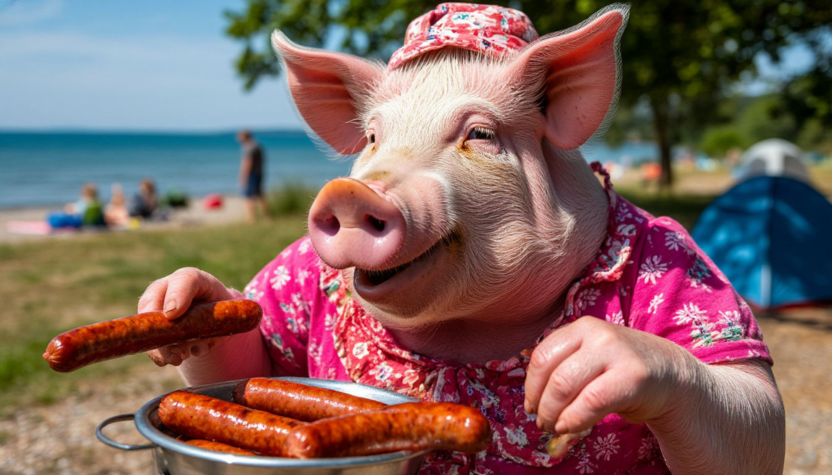 Каково же было наше разочарование, когда утром мы обнаружили в тарелке лишь хвостики, оставшиеся от колбасок! Ясно – кто-то посягнул на нашу собственность, лишив нас завтрака. Больше всех расстроился десятилетний сын, для которого собственноручно поджаренные на решётке колбаски – особенно желанное лакомство. Ругая ночных воришек, мы вдруг обнаружили на столе улику, указывавшую на то, что похитителем являлась особа женского пола, – смартфон в розовом чехле. Я предположил, что, возможно, это некий эквивалент платы за съеденные колбаски, но, поразмыслив, мы пришли к выводу, что их стоимость не сопоставима. Смартфон был заблокирован, работала лишь одна функция – видеозапись, поэтому мы в полной мере воспользовались ею и высказали вероломной похитительнице всё, что о ней думали, а в конце прямо и безапелляционно назвав её «пьяной свиньёй». Решили, что едва ли дама, забывшая свой телефон на месте возмутительной кражи, была трезва. Позднее, уже покидая кемпинг, мы сдали смартфон в администрацию и со спокойной душой отправились домой.