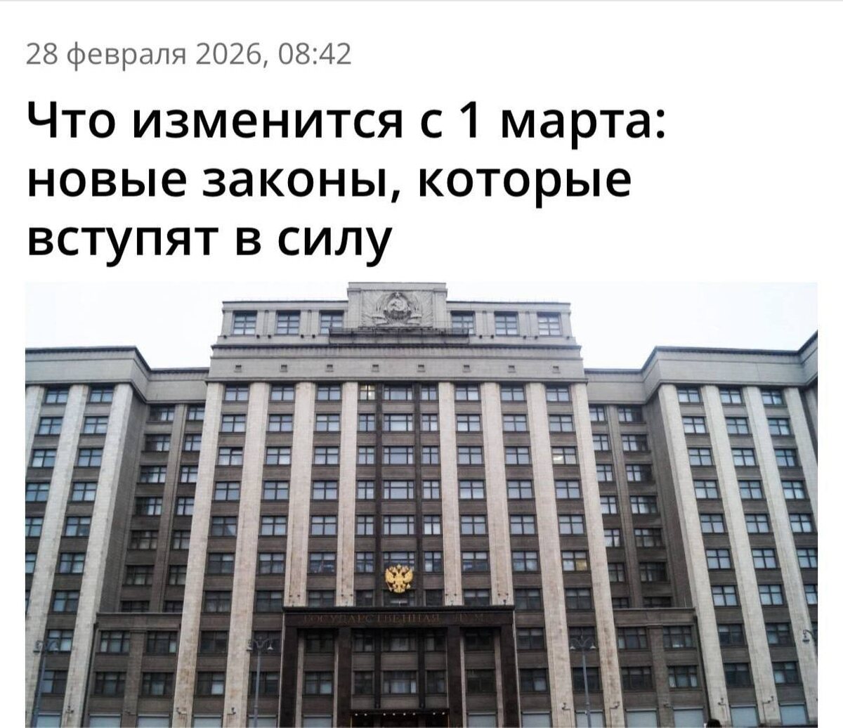 ! Перезимовали ! И уже 1 марта вступили в силу Новые законы в России. Они касаются недвижимости, ЖКХ, финансов, интернета и медиа. Разбираем подробно. 📍Недвижимость и ЖКХ 🔴Электронный паспорт МКД Теперь каждый многоквартирный дом должен иметь электронный паспорт, который размещается в ГИС ЖКХ. Формировать его могут: БТИ — сбор и обновление данных о техническом состоянии недвижимости. Управляющие компании — для действующих домов. Застройщики — для новостроек, после ввода объекта в эксплуатацию. Подрядчики — для ИЖС, после приёмки дома. Почему это важно: покупателям и арендаторам станет проще проверять состояние дома, инженерные системы, историю ремонтов и долгов. Для инвесторов — это инструмент прозрачности. 🔴Долги по ЖКХ — теперь в ГИС ЖКХ В системе будет публиковаться информация об исполнительных производствах по взысканию задолженности за жильё и коммунальные услуги. Практический эффект: перед покупкой квартиры или дома можно быстро проверить, нет ли долгов у продавца, чтобы и