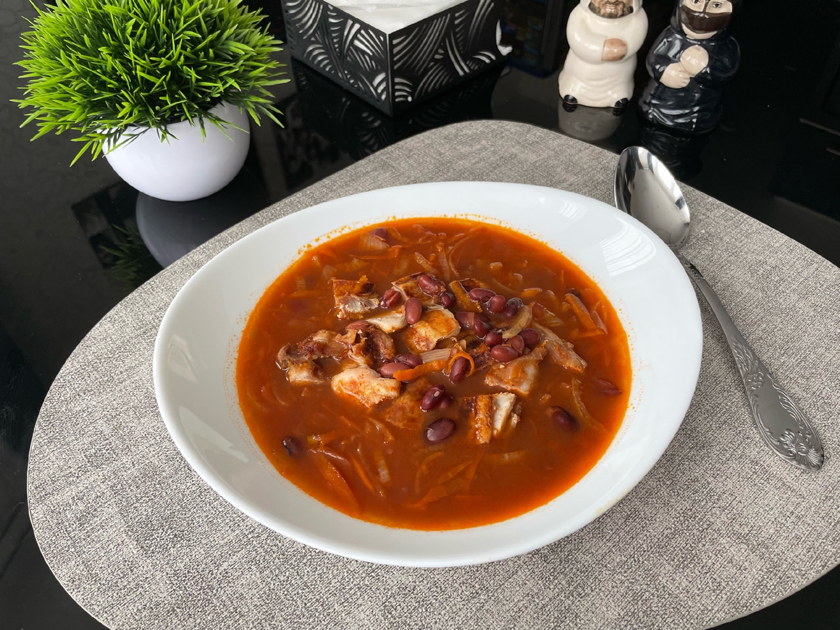 Супчик с ярким и насыщенным вкусом. Люблю его с мясом и без.