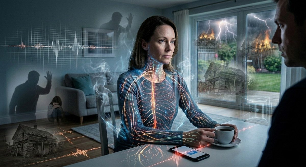 Нервная система, человека слишком долго жила рядом с опасностью, пока опасность была замаскирована под бытовые мелочи, под интонации, под намёки. Она научилась срабатывать на лёгкий толчок. А на большую беду - наоборот, собираться в точку, становиться удивительно устойчивой, почти как старый дом, который уже пережил не один ураган и знает, как держаться на ветру.