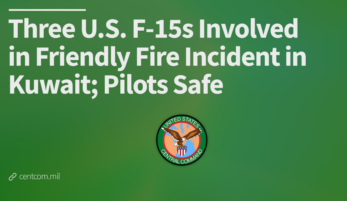 над Кувейтом, очевидно, в результате инцидента с дружественным