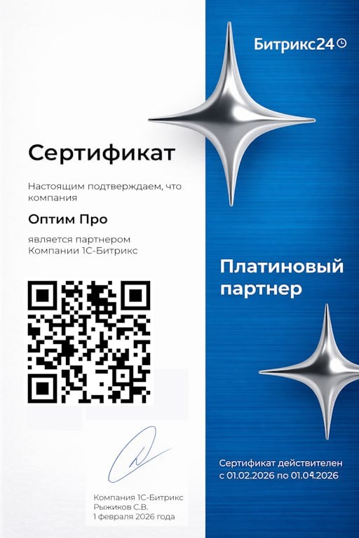 Компания Оптим Про подтвердила свой высший платиновый партнерский статус среди российских интеграторов Битрикс24