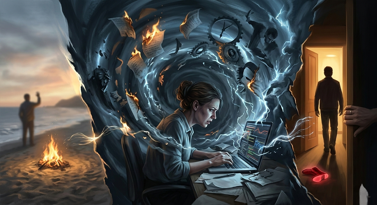 Порой внутренний шторм переживаний закручивает нас так, что мы утрачиваем береговую линию реальности и всё внимание уходит на волны задач, тревог, дедлайнов и самообвинений, а берег, где кто-то разжигает костёр и машет нам рукой, остаётся вне поля зрения. Мы увлечённо роемся в завалах внутренних диалогов, мысленно репетируем завтрашнюю презентацию, ведём яростную полемику с начальником, который нас даже не слышит, и при этом не слышим тех, кто прямо рядом, кто пишет нежное скучаю, кто готовит ужин в тишине, оставляя включённый свет в коридоре, словно говоря: “Я всё ещё здесь, ты заметишь?”.