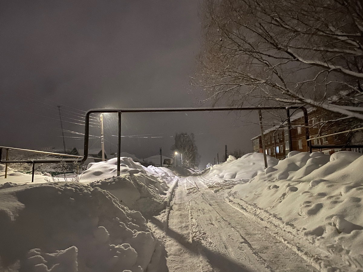 За сугробами и снежными отвалами прячутся дома и постройки. Дороги на улицах села едва успевают чистить и до неприличия уже сузили. Если на второстепенных улочках встречаются две машины, то разъехаться можно с трудом, или лишь у чьёго-то дома, где заезд почищен. Некоторые крыши не выдерживают и рушатся. Остальные аврально очищают от снега.
