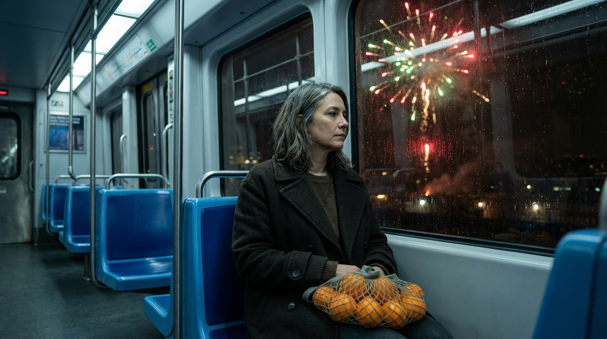 Электричка набирала ход. За окнами темнота расступалась редкими огнями – дачные посёлки, заправки, одинокие фонари. Мужчина закрутил термос. Я постучала ногтем указательного пальца по подбородку – привычка с работы, когда считаю упаковки на полке – и подумала, что вот так и выглядит мой Новый год. Вагон, мандарины, незнакомец напротив.