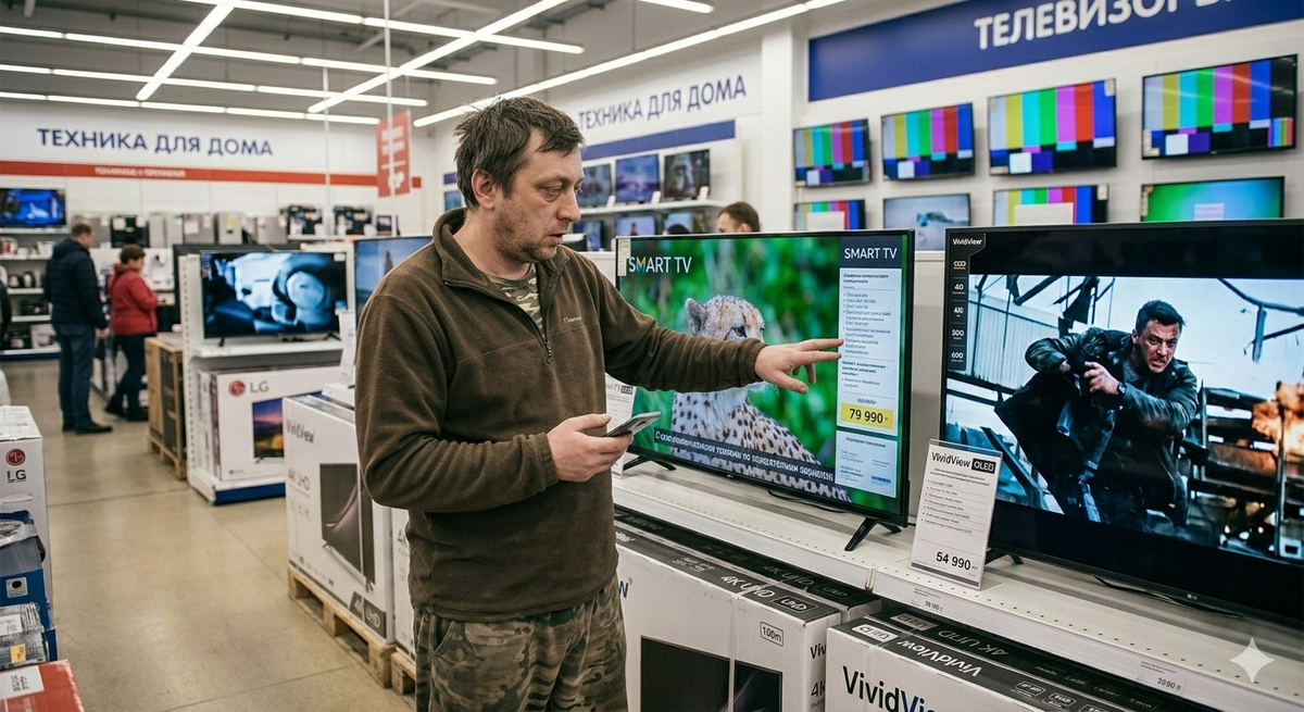 Два года назад Андрей пришёл домой с новым телевизором. Шестьдесят пять дюймей, чёрная рамка, коробка до потолка. Грузчики занесли, он расписался, они ушли.