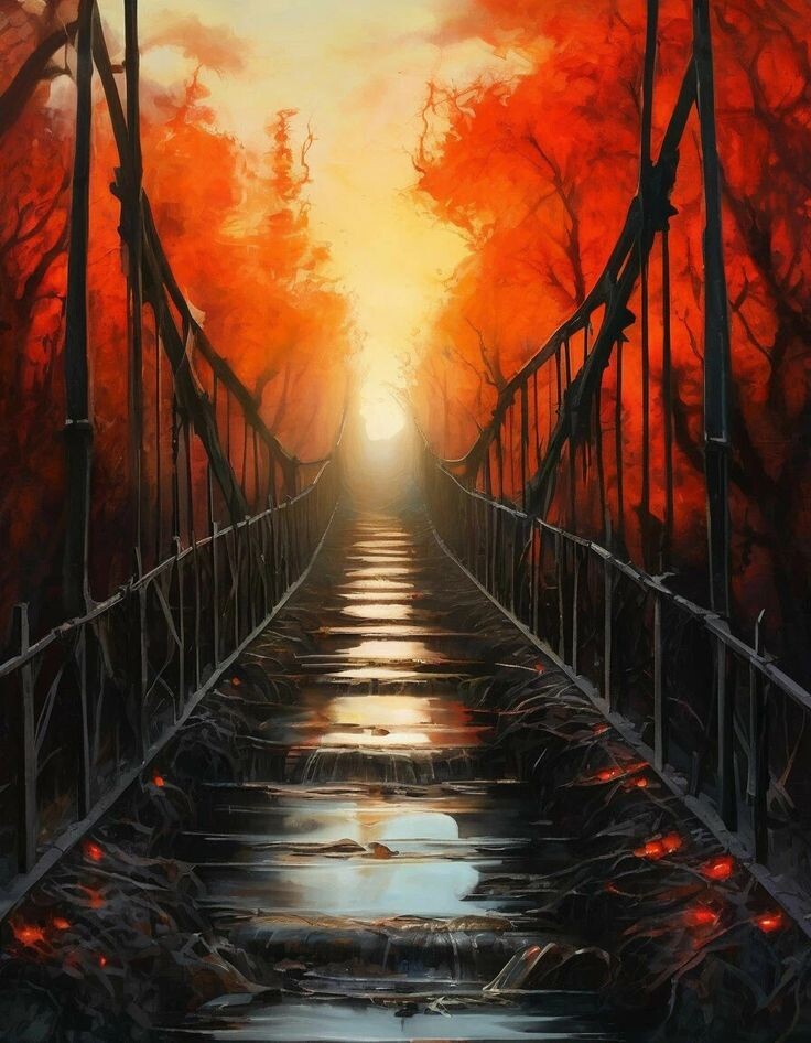Представьте себе это не обычный деревянный или каменный мост. Калинов Мост – это огненный мост, пылающий, раскаленный добела, перекинутый через огненную реку Смородину (или Пучай-реку). Эта река – не просто водный поток, а граница между миром живых и миром мертвых, или, как вариант, между миром людей и миром нечистой силы.