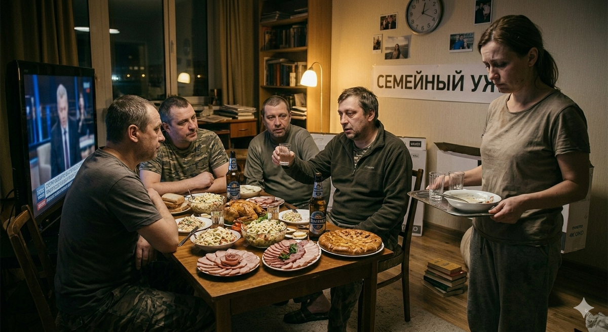 Они прошли в квартиру. Семь человек. Восемь с девушкой Паши. Кто-то нёс пакеты — еда, напитки. Кто-то уже открывал шампанское на кухне.