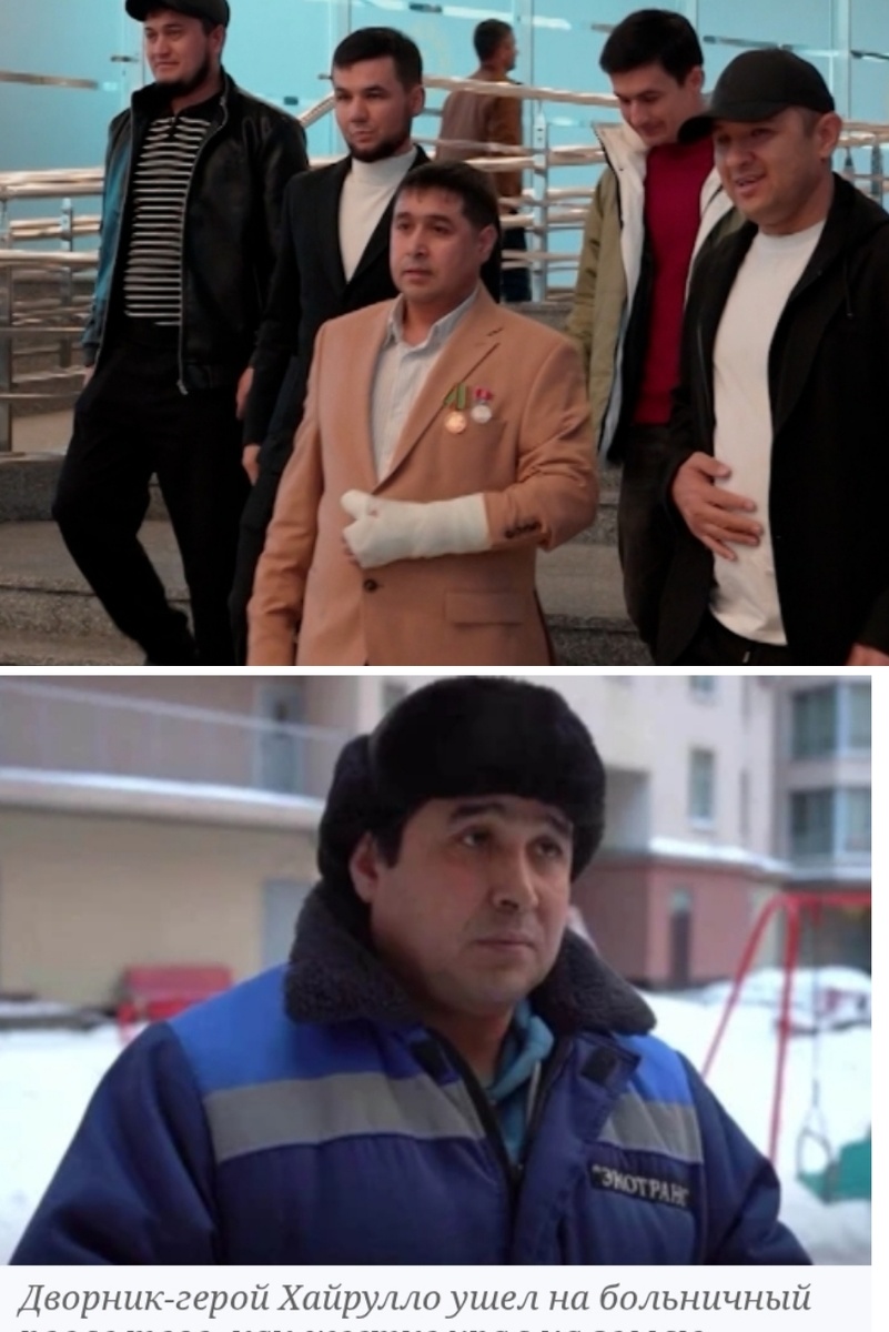 Уже понеслислись домыслы с обесцениванием его героизма. Пошли разговоры, что якобы и ЧП-то не было, поскольку никаких официальных комментариев нет, да и выглядит уважаемый геройский дворник вполне здоровеньким, несмотря на то что ему пришлось реально ловить летевший с высоты 20 метров 20-килограммовый "груз", который, по оценкам экспертов, в момент приближения к поверхности весит уже в 10 раз больше.
