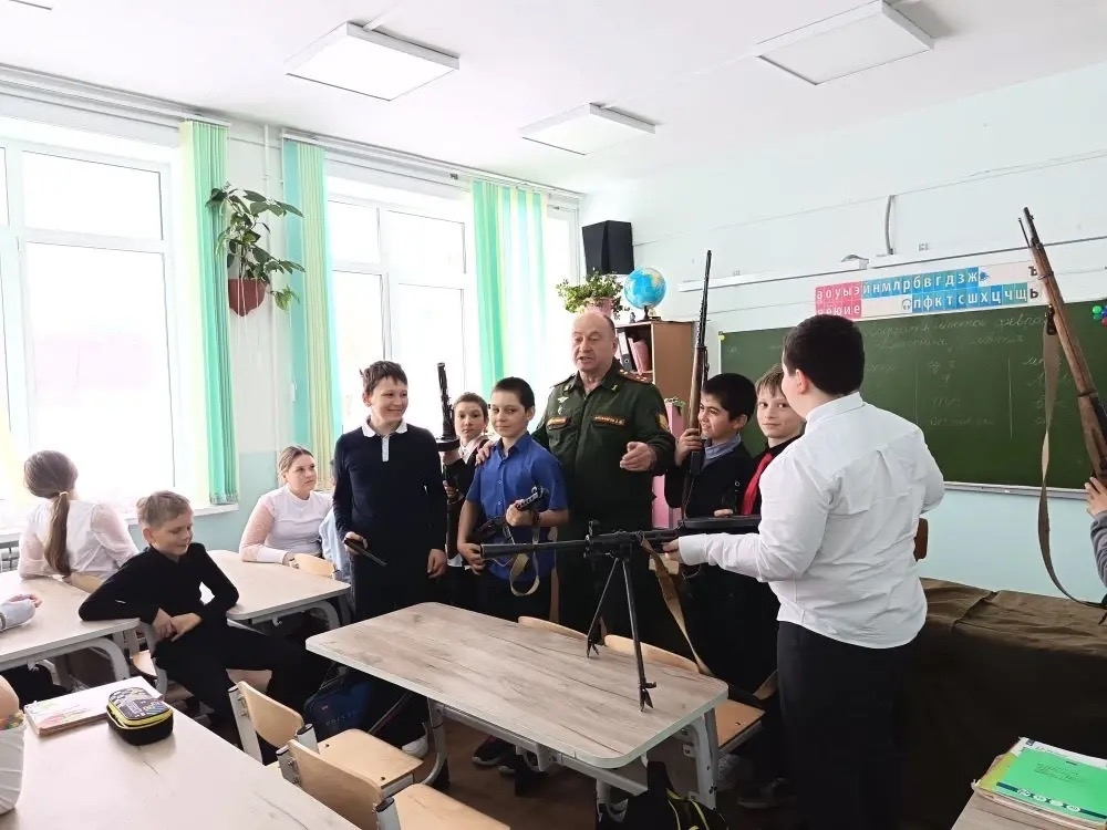 Последний урок мужества, в рамках месячника военно-патриотического воспитания, посвященный героической истории Красной Армии был проведен 26 февраля, в МАОУ СОШ N34 село Березняки, для учеников 4-го класса. Школа сельская, гостей которые посещают сельские школы на самом деле не много.