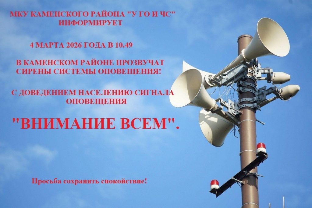 В Каменском районе 4 марта состоится плановая проверка системы оповещения населения. Мероприятие направлено на оценку технической готовности оборудования, которое будет задействовано в случае реальной чрезвычайной ситуации. Как сообщает МКУ Каменского района «У ГО и ЧС», учения начнутся в 10 часов 49 минут. В ходе проверки будут включены электросирены и уличные громкоговорители, через которые прозвучит текст: «Проводится проверка готовности системы оповещения населения! Просьба сохранять спокойствие!». В ведомстве пояснили, что звук сирен соответствует сигналу «ВНИМАНИЕ ВСЕМ!». Услышав его, жителям рекомендуется включить телевизоры или радиоприемники для получения важной информации. Подобные тренировки проводятся на регулярной основе для поддержания систем в постоянной готовности и информирования граждан о порядке действий при угрозе ЧС.