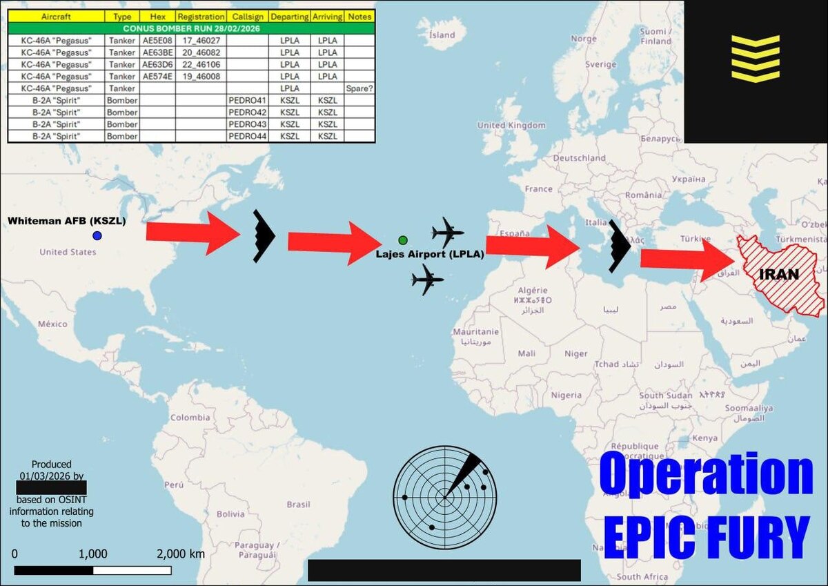 Π±ΠΎΠΌΠ±Π°ΡΠ΄ΠΈΡΠΎΠ²ΡΠΈΠΊΠ° B-2Π Π½Π°Π½Π΅ΡΠ»ΠΈ ΡΠ΄Π°Ρ ΠΏΠΎ ΠΡΠ°Π½Ρ Π² ΡΠ°ΠΌΠΊΠ°Ρ