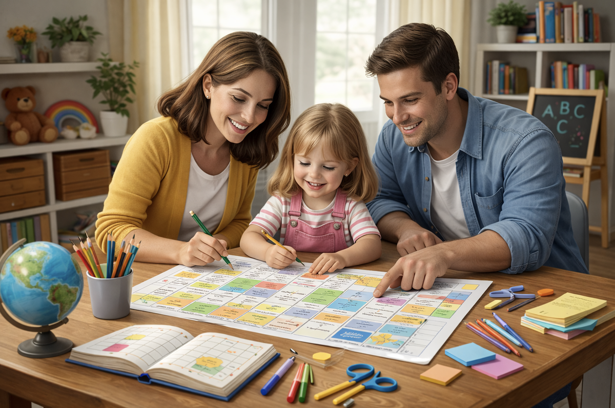 Стабильность плана повышается, если в нем участвуют оба родителя и, при необходимости, другие взрослые. Распределение задач по времени и по формату занятий снижает нагрузку на одного человека и показывает ребенку согласованность взрослых.