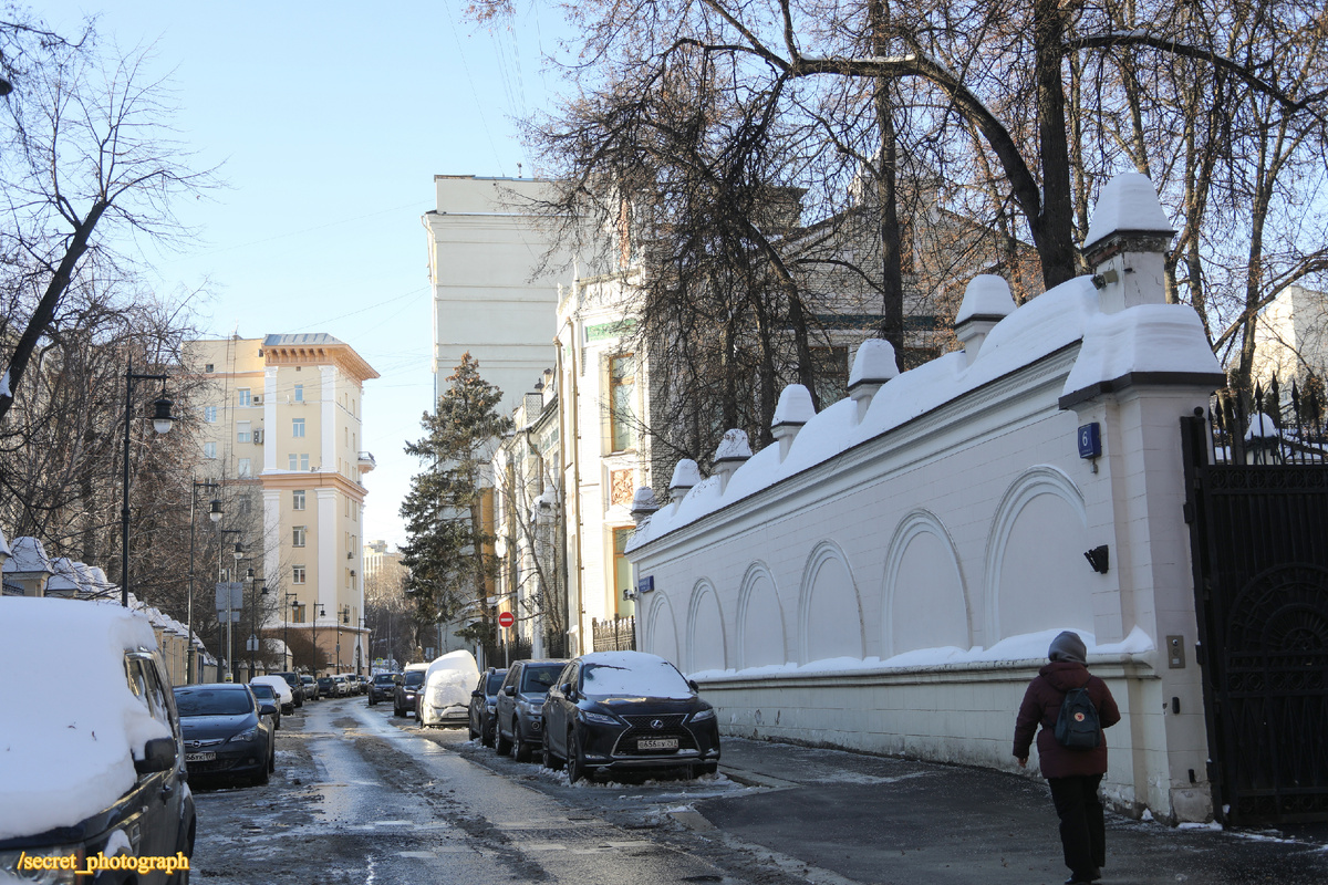 Уже не помню, сколько раз я говорил, как жалею о том, что в Москве такие узкие переулки и улочки. Снова прочувствовал это, когда старался сфотографировать удивительный памятник архитектуры, расположившийся в Померанцевом переулке. Его когда-то называли Зубовским по фамилии стрелецкого головы Ивана Зубова, чей полк стоял на страже Чертольских ворот Земляного города. Затем, когда здесь возвели храм Троицы Живоначальной, разрушенный в 1930-х, переулок переименовали в Троицкий, а память о стрелецком полковнике сохранилась до сего дня в названиях Зубовской площади и Зубовского бульвара. Нынешнее название переулку дали в 1922 году в честь ротного командира Алексея Померанцева, участника революционных событий 1917-го, а впоследствии ученого-физика, доктора наук и профессора, преподавателя МГУ. И гуляя по этому переулку сегодня, невозможно не обратить внимания на… Впрочем, как, наверное, и на любое произведение эпохи модерна. Каждое из них уникально, каждое заслужило свое внимание и по достоин