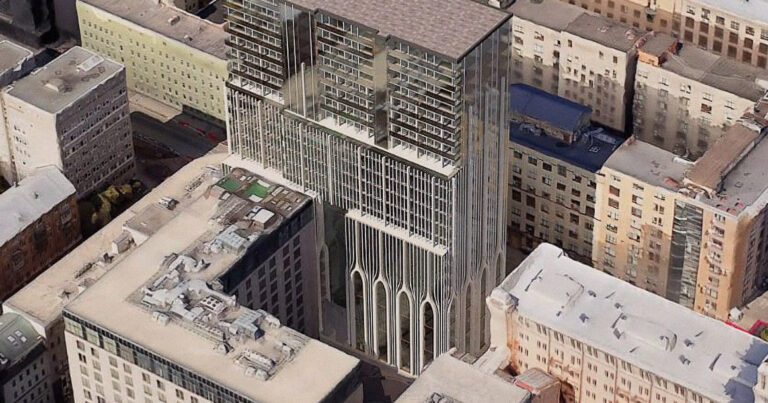 О том, что на месте здания Главного архитектурно-планировочного управления упраздненной Москомархитектуры на улице Гашека появится новая застройка, известно давно. Еще в прошлом году здесь согласовали строительство офисного комплекса — по объему он почти в девять раз превышает существующее здание. Теперь можно посмотреть, как именно будет выглядеть этот проект. Выглядит он, в общем-то, так же неожиданно, как и визуализации Дома кино — ЖК, строящегося чуть дальше, на Васильевской. В телеграм-каналах новое здание, как будто стоящее на тонких ножках, описывают как «нечто ар-декошное» и дом в «эстетике великого Гэтсби». Рендеры опубликовал канал «Недвижимость инсайды». По его данным, это уже согласованные визуализации (официально об этом не говорилось). Основной объем — высокий прямоугольный корпус с подчеркнутыми вертикалями на фасаде (отсюда, видимо, ассоциации). Вообще по рендерам создается ощущение, что здание буквально вставили между существующими домами, почти не оставив ему воздуха.